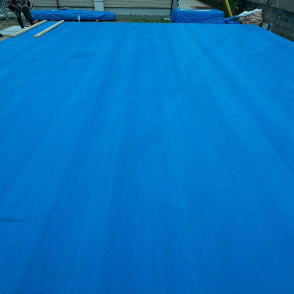 合板を張り終わった後に この合板を養生するためのシートを貼ります