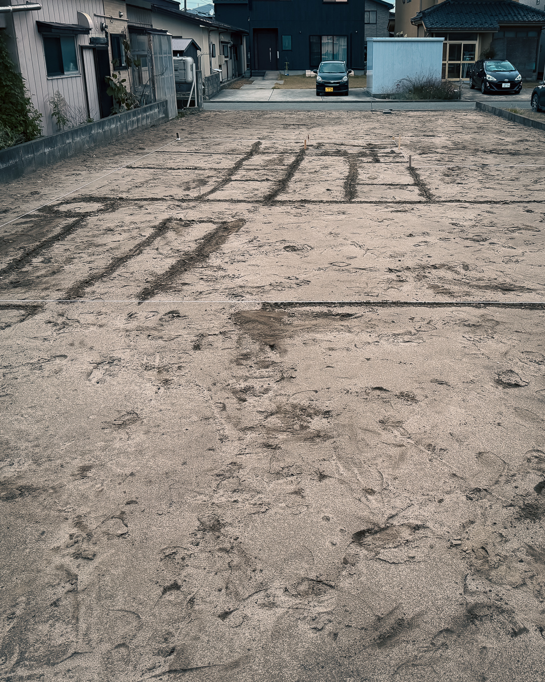 地縄を張って お施主様へ地面に直接間取り絵を書いておつたえしました