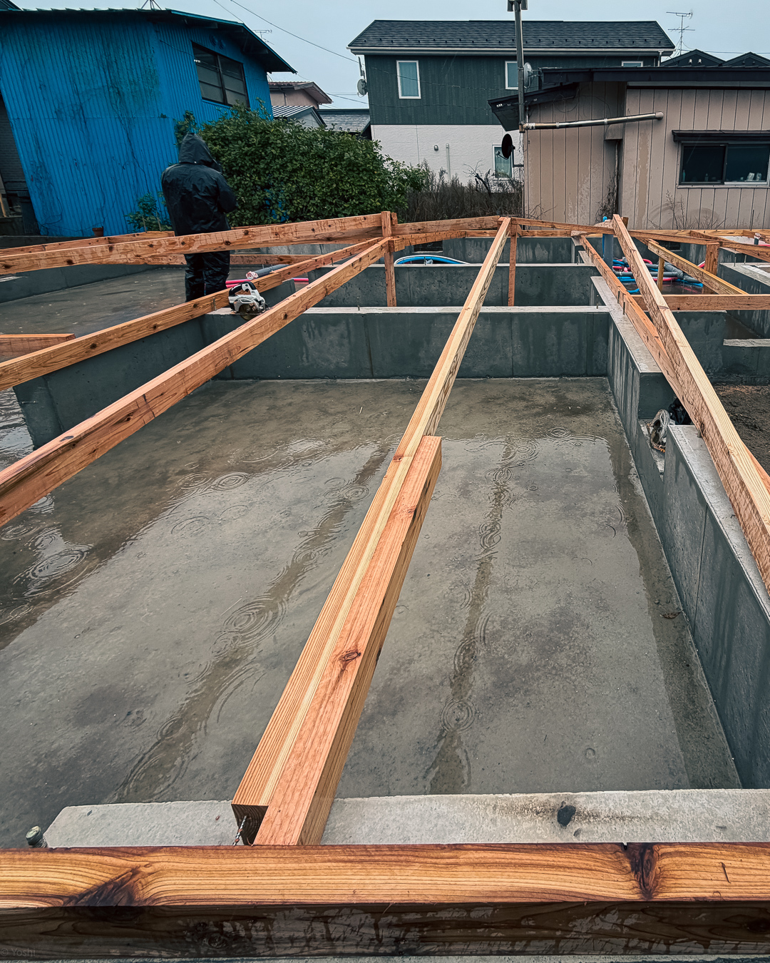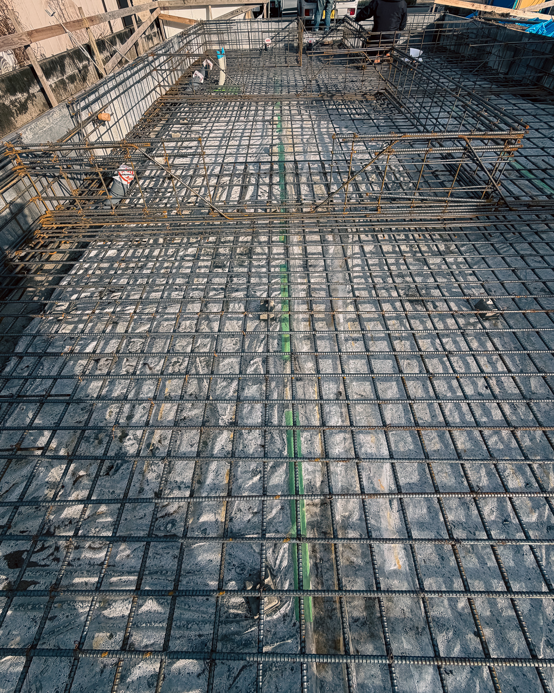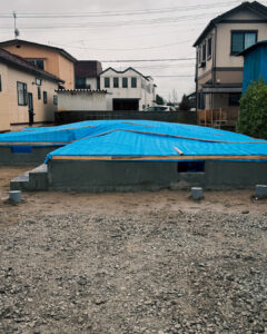 資産価値を別として土地本来の価値として大事な事は地盤状態です見えない下地がどのようになっているかが大切です クリスマス前までにコンクリート打設工事が終わり 来年の建方に向けて保存と養生をして新年を迎えました