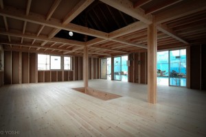 「ヨシの家」構造上必要な内部の柱は、大黒柱1〜2本とし、外周壁と床面の強度を上げた強い箱となっています。